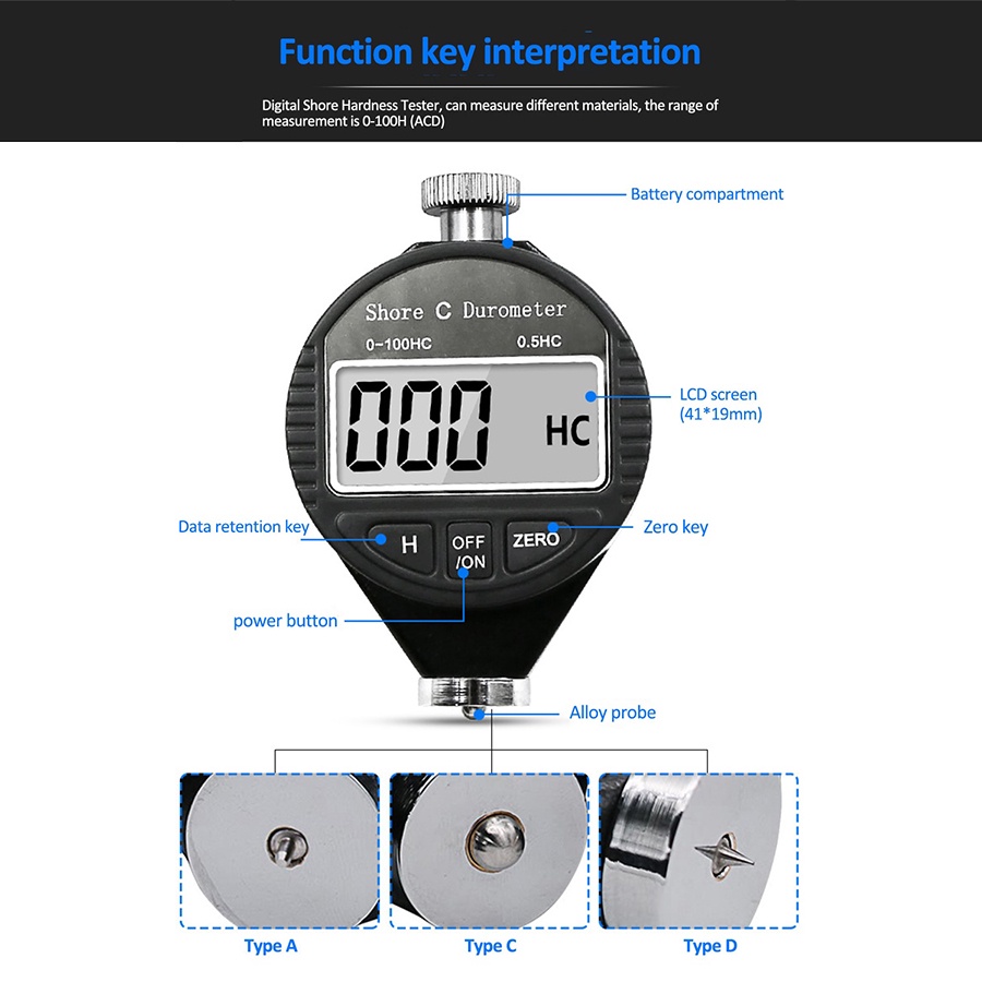 Durometer Digital Shore A C D / Hardness Tester / Alat Ukur Kekerasan Material Kulit Karet Plastik