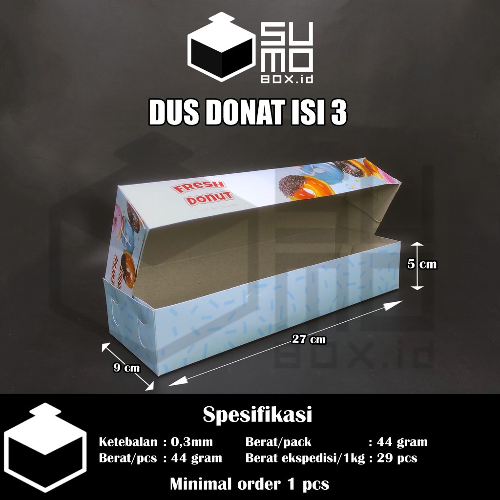 Dus Box Donat Motif isi 3 / Kemasan Kotak Tempat Donut ukuran 27x9x5.5 cm [ECERAN]