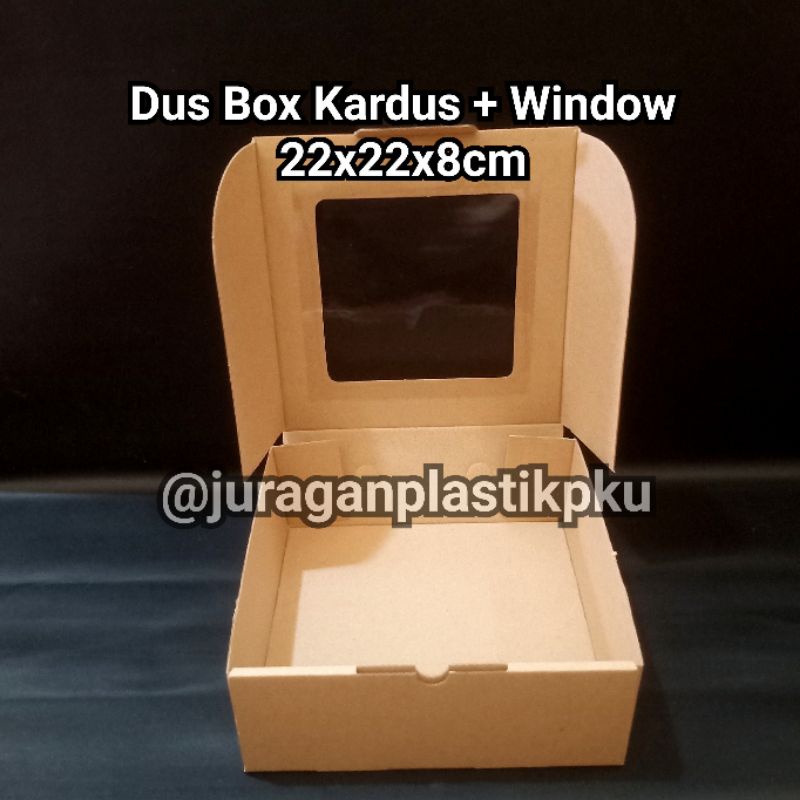 Dus Box Kardus + Window 22x22x8 cm | Kotak Kemasan Corrugated Box 22x22 cm 22 x 22 Jendela Mika Plastik Cake Kue Hampers