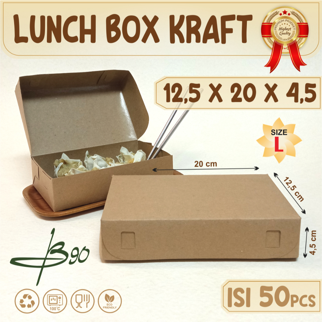 Dus Lunch Box Kertas Kraft Polos Ukuran M,L isi 50 pcs / Paper box lunch / kotak makan kertas / Dus