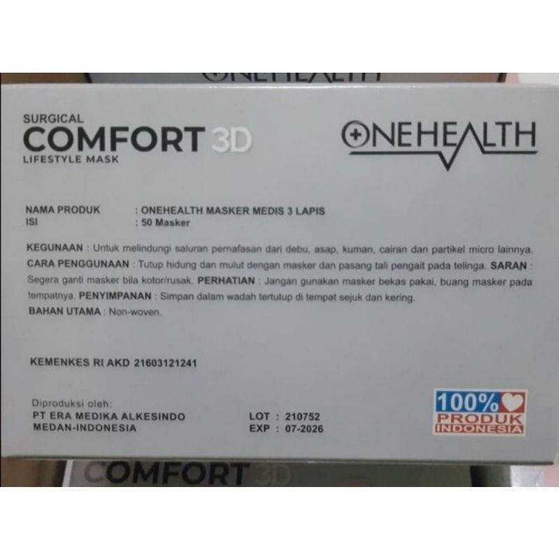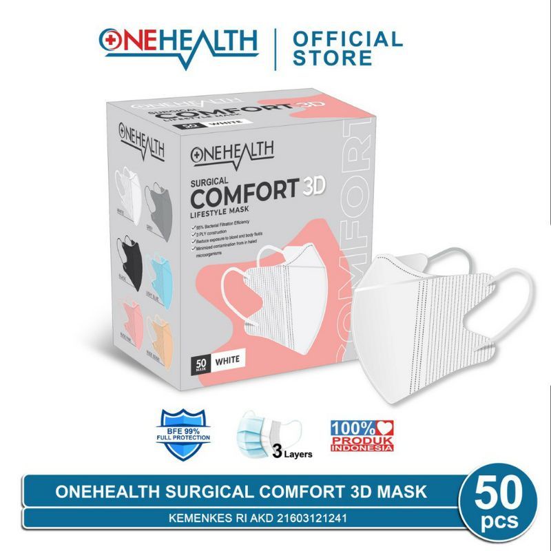 Masker Duckbill Medis OneHealth One health Duckbill Surgical Comfort 3D Mask 3ply isi 50pcs Emboss