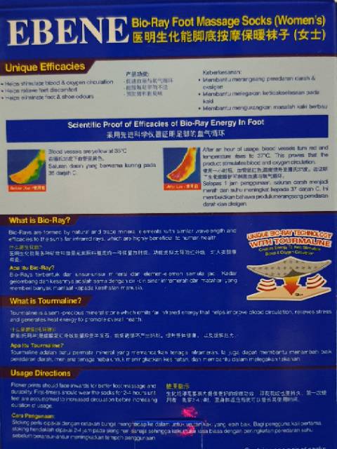 EBENE BIORAY FOOT MASSAGE SOCKS WITH TOURMALINE 1 PAIR (WOMEN'S)