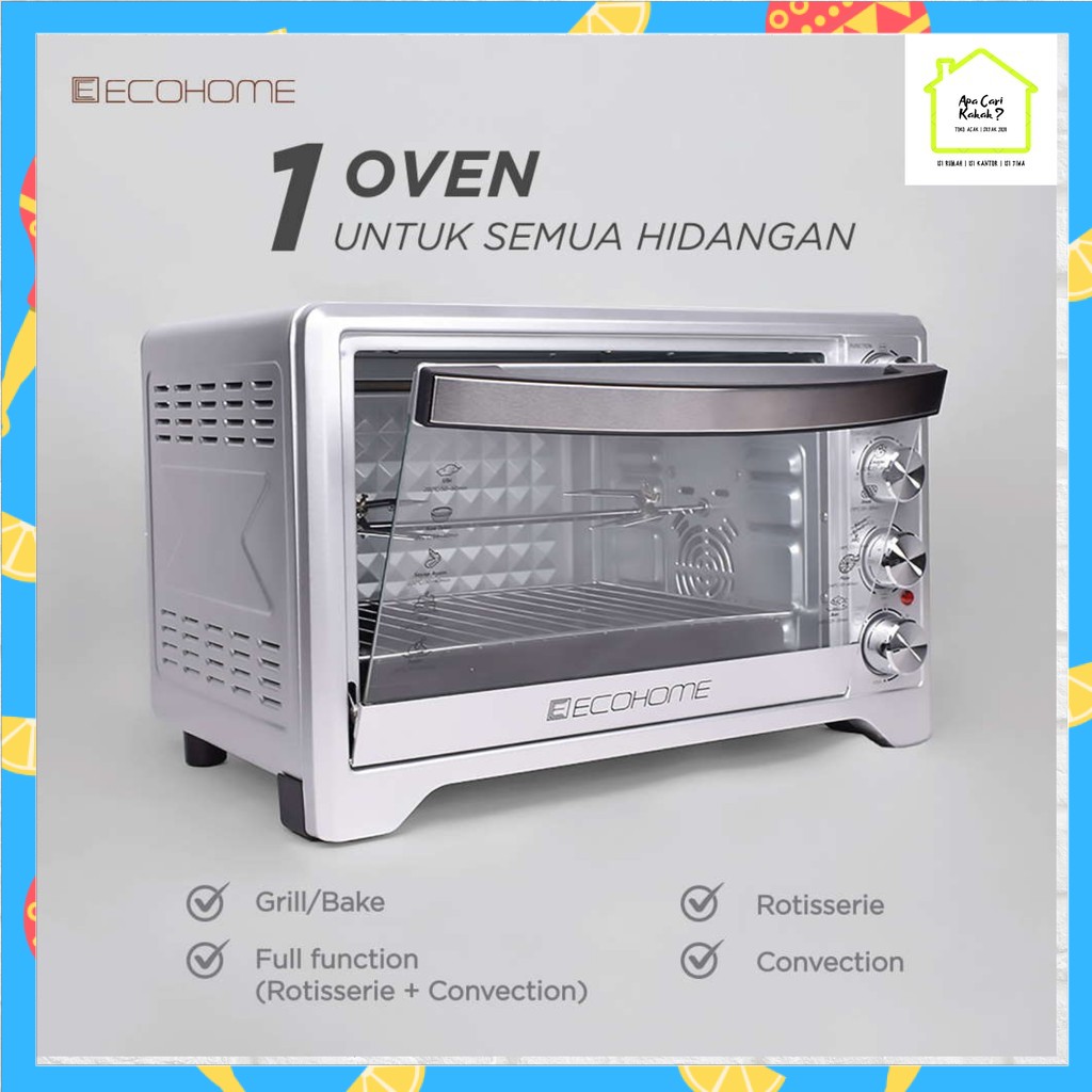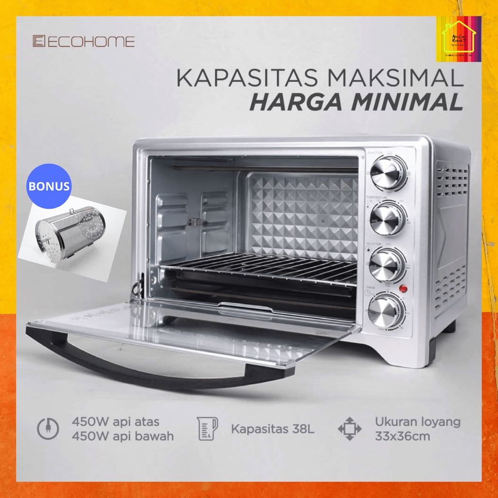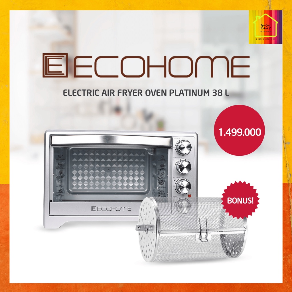 ECOHOME Electric Oven Platinum Kapasitas 38L Low Watt (EOP 888) FREE Air Fryer Basket Garansi Resmi