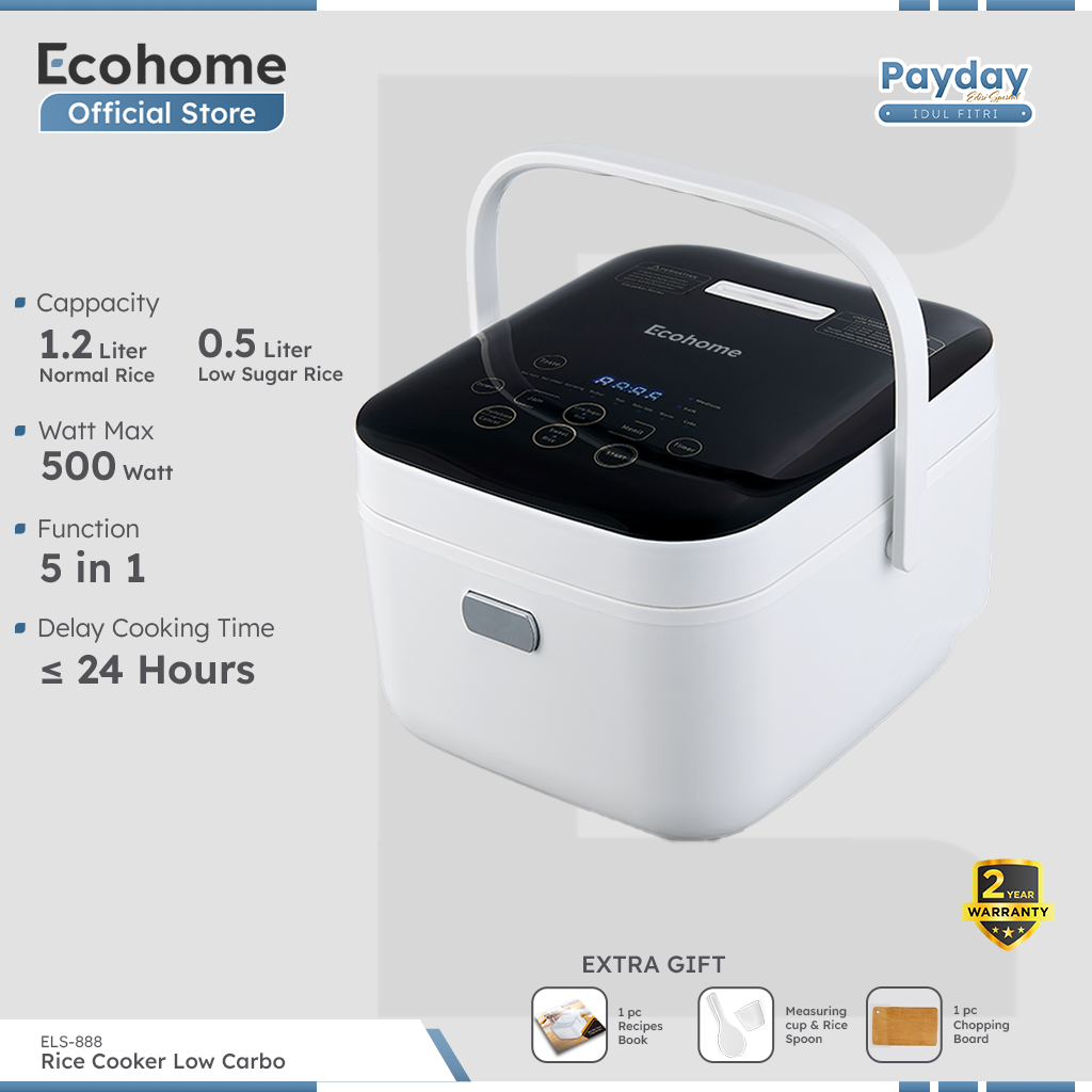 ECOHOME Rice Cooker Low Carbo ELS888 Innerpot 1.2L Capacity Penanak Nasi 3L Serbaguna Low Watt