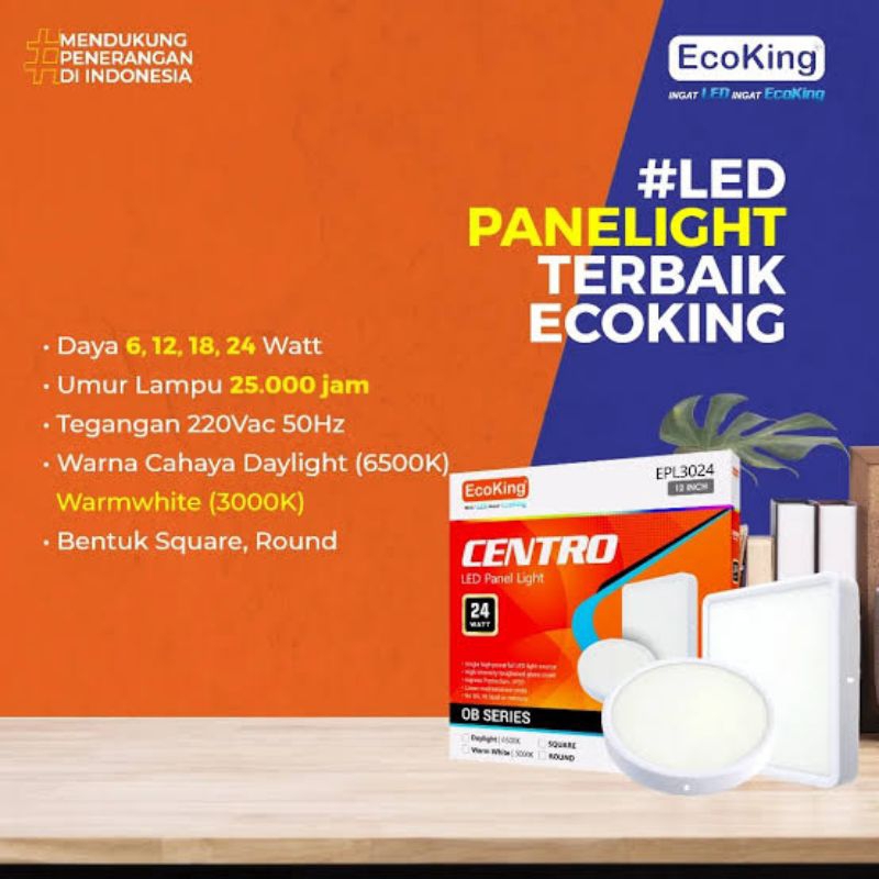 ECOKING OB Panel CENTRO Segi dan Bulat, White dam WarmWhite.