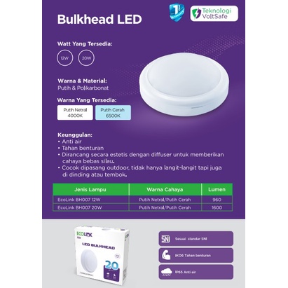 ECOLINK BULKHEAD LED 12W 12 watt TAHAN LAMA SUPER TERANG