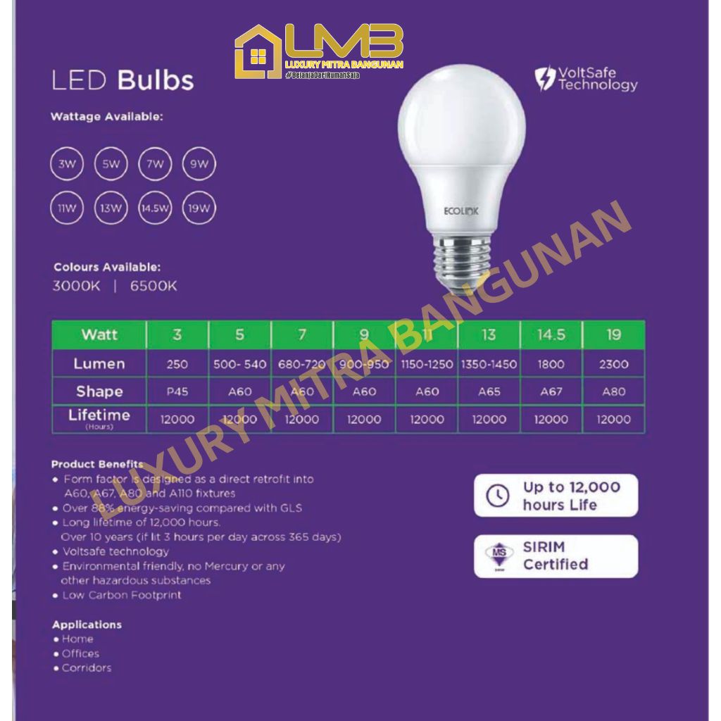 ECOLINK Lampu Bohlam LED Bulb 9W - Putih Terang (Cool Daylight 6500K)