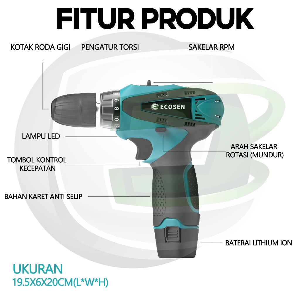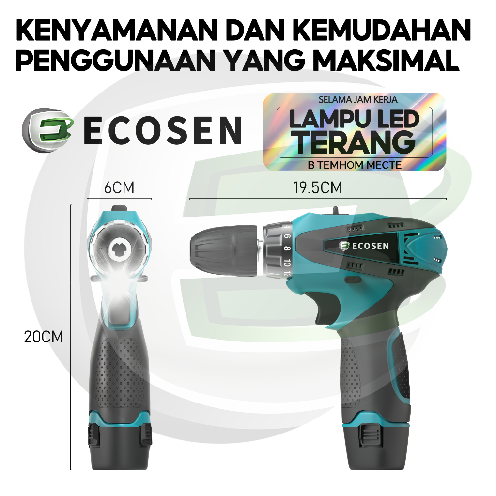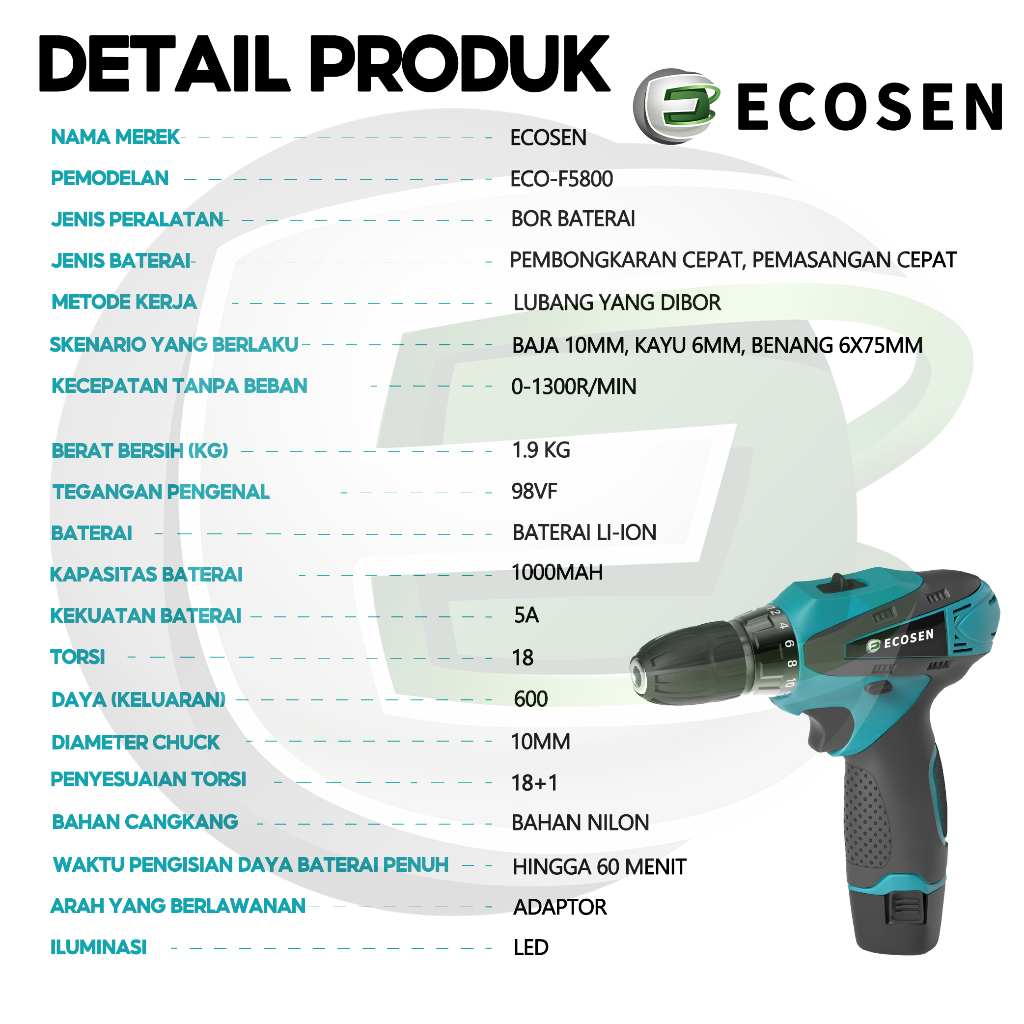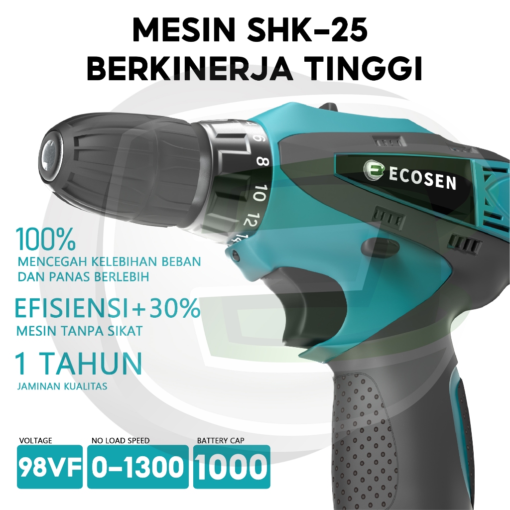 ECOSEN 98V Mesin Bor Tangan Bor listrik Bor cas Cordless Drill Battery