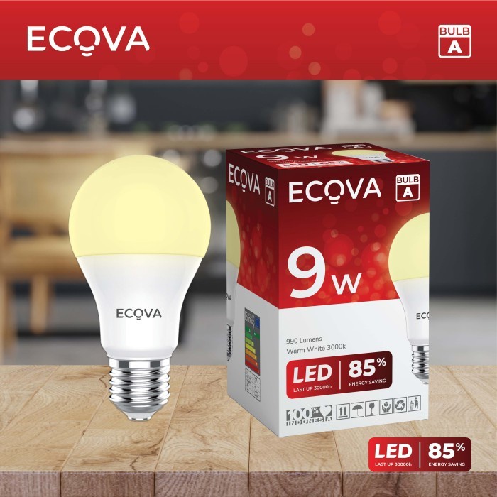 ECOVA Lampu LED Bohlam Bulb Tipe A 9W E27 220V Putih / Kuning - Putih 6500K