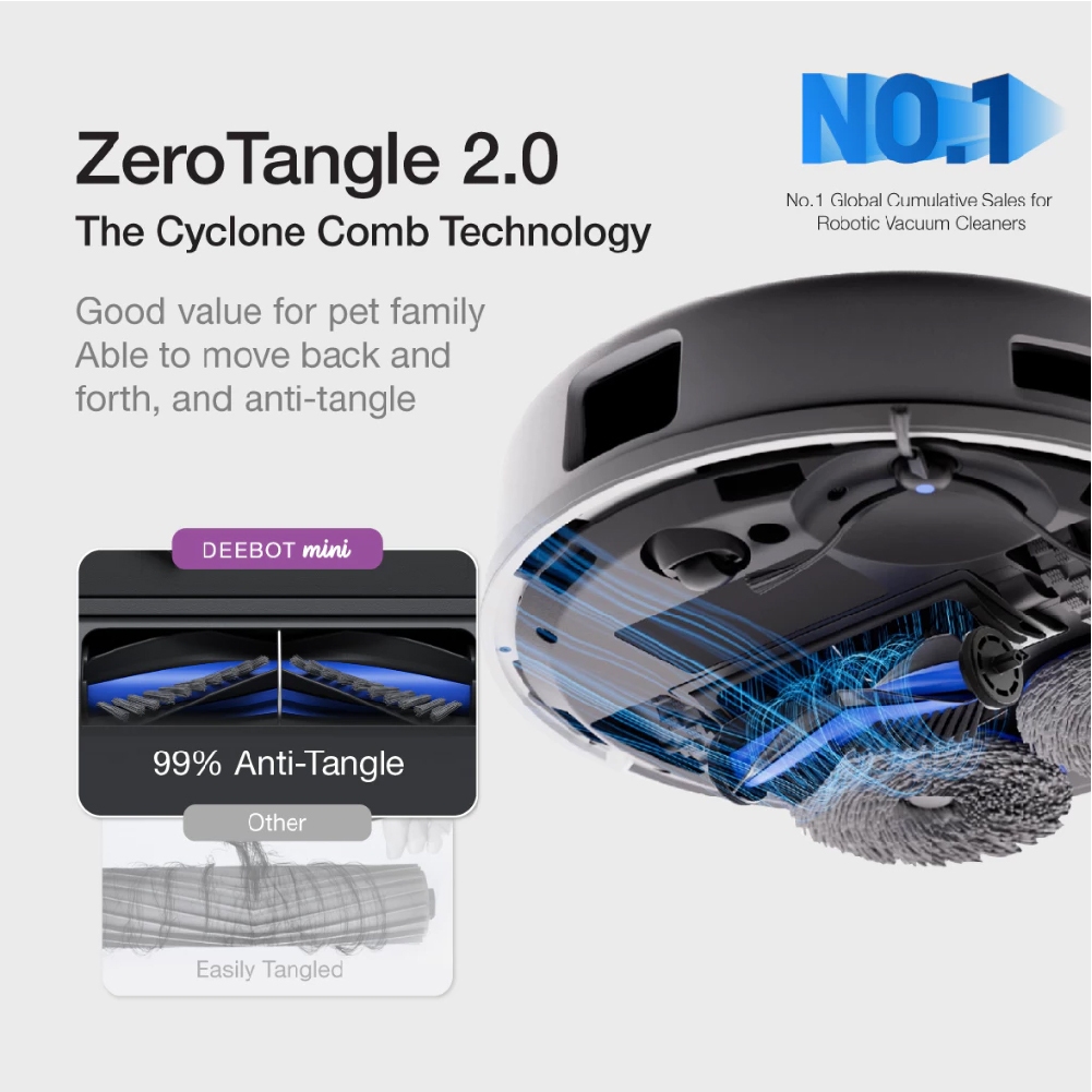 ECOVACS DEEBOT MINI Robot Vacuum Cleaner Compact But Powerful | LDS LiDAR & Line Laser | ZeroTangle 2.0 Anti-Tangle Tech | Vakum Sapu Mop Pel