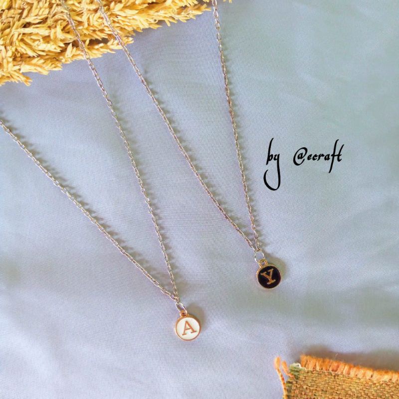 ECRAFT Kalung Request Custom Inisial Nama Epoxy Enamel Rantai Hitam Putih