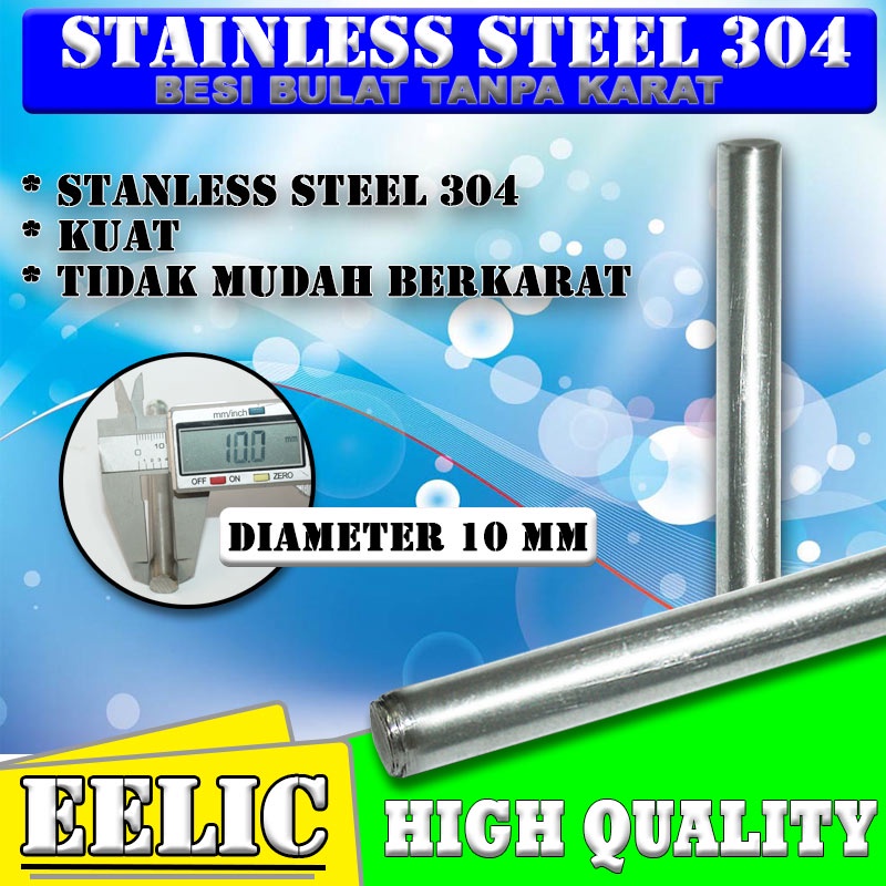 EELIC BEB-D10STAINLESS BESI BETON BULAT POLOS STAINLESS STEEL 304 BESI BULAT TANPA KARAT DIAMETER 10 MM DENGAN PANJANG 50 CM COCOK UNTUK DIY MESIN-MESIN