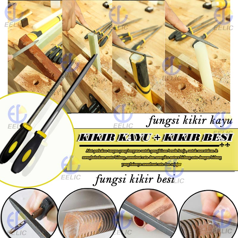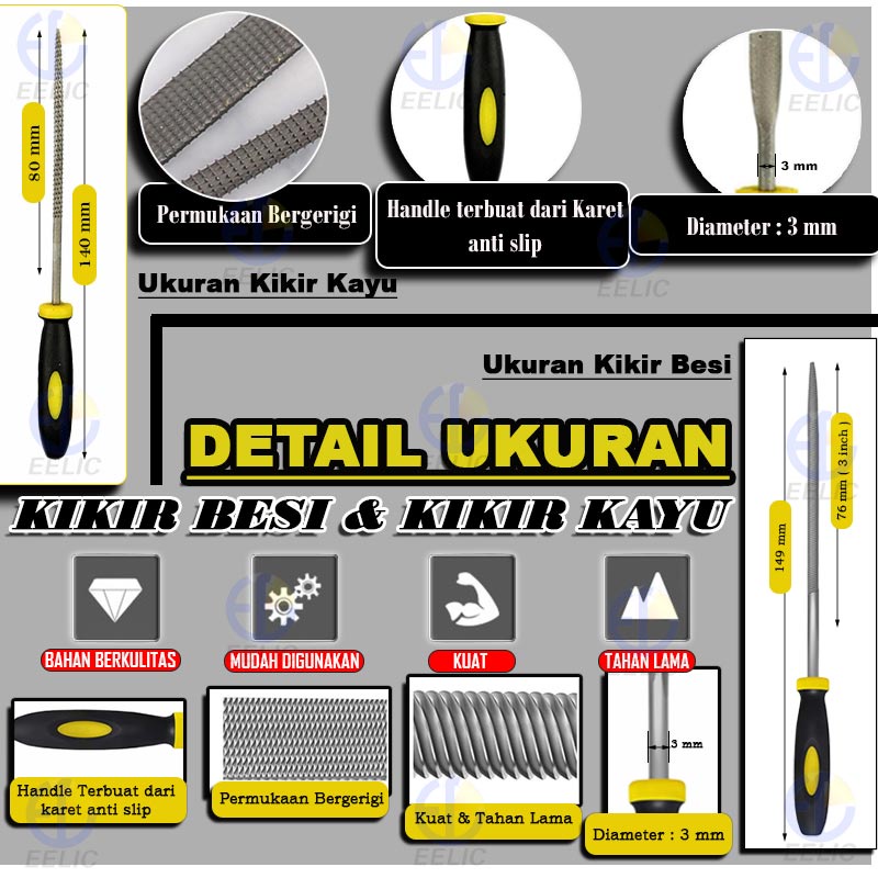 EELIC KIR-BK3X140BULAT Kikir besi 1 pcs dan kikir kayu 1 pcs bentuk bulat