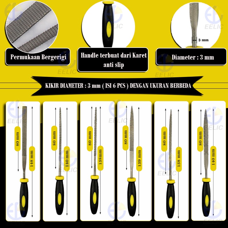 EELIC KIR-BK3X140X12 Mix 1 set kikir besi 6 pcs dan kikir kayu 6 pcs