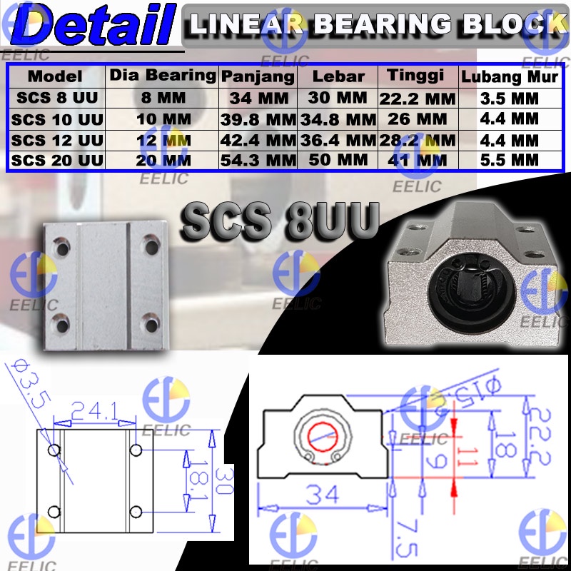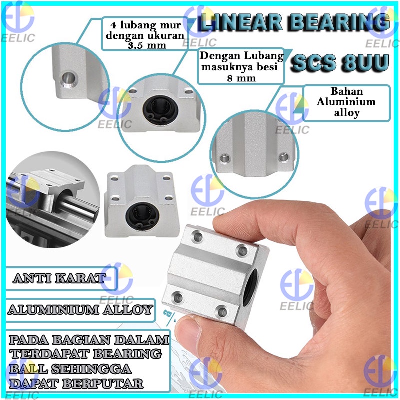 EELIC LBB-SCS8UU Linear bearing block scs 8uu dengan ukuran lubang besi 8 mm 3d printer