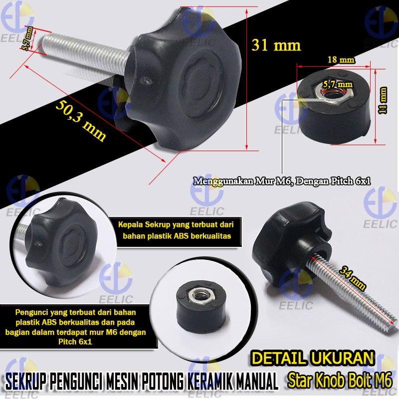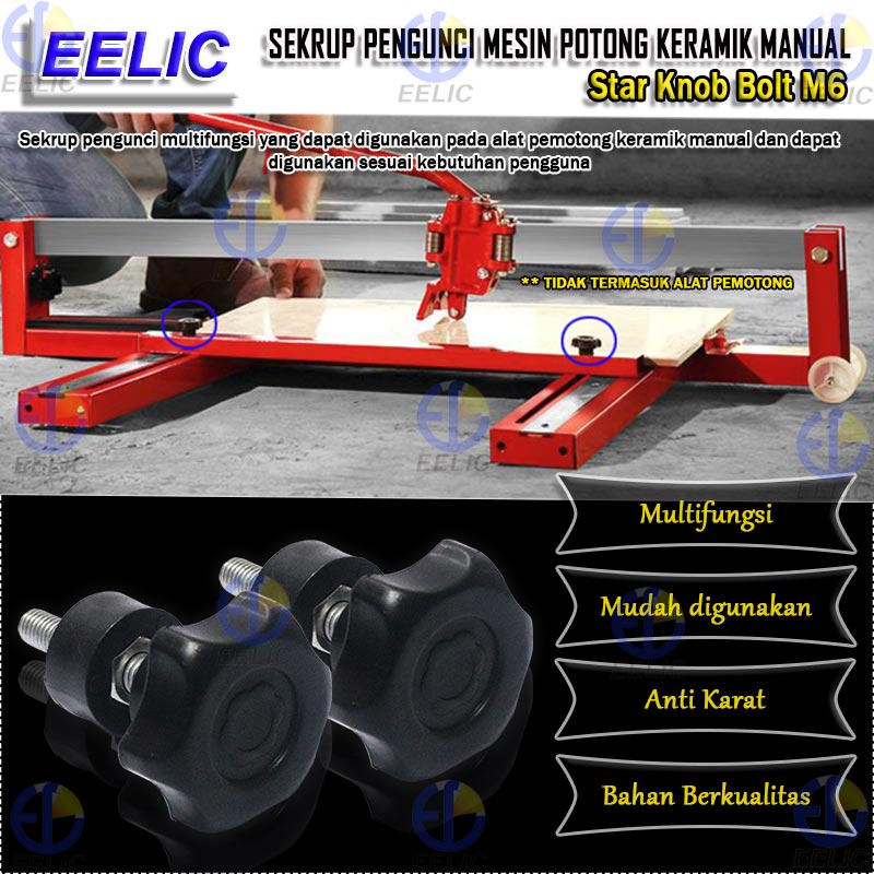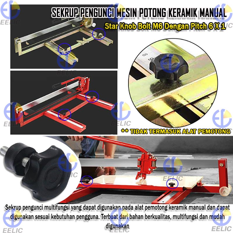 EELIC SEP-PM6 Sekrup pengunci mesin potong keramik manual star knob bolt m6 dengan pitch 6x1