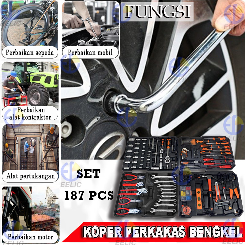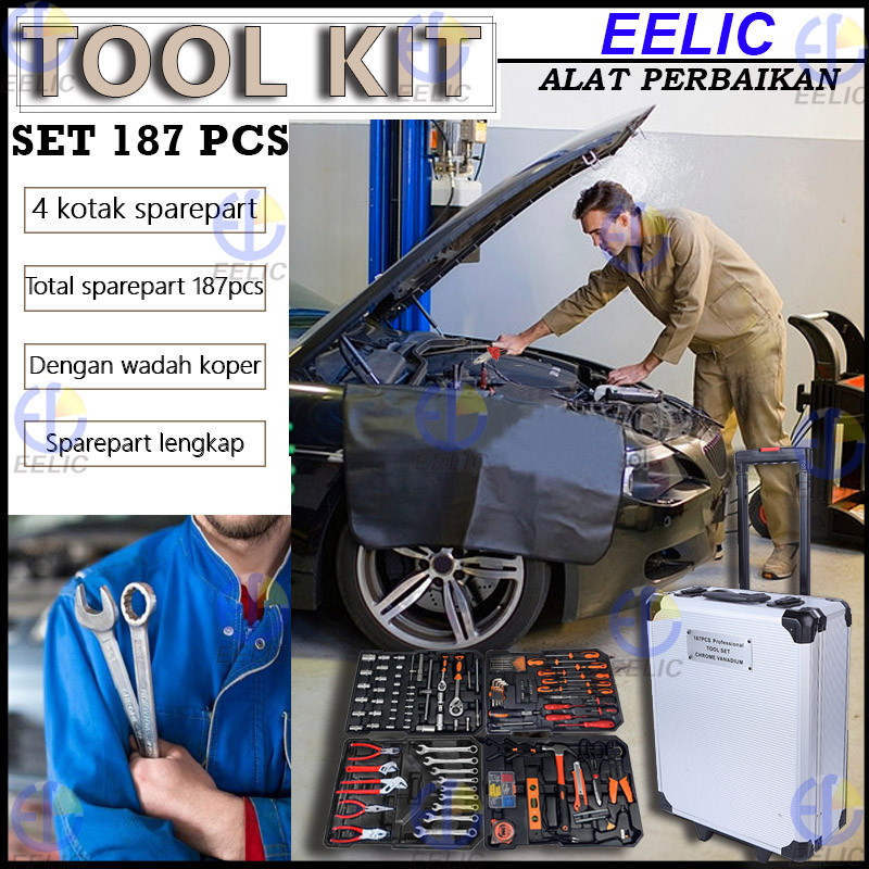 EELIC TOS-KOPER Tool Kit Set 187 PCS Perkakas Bengkel Dan Rumah Koper Lengkap Bahan Kuat