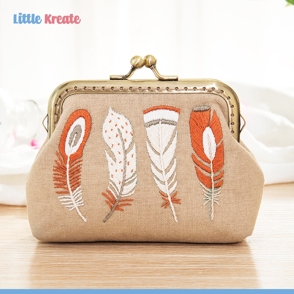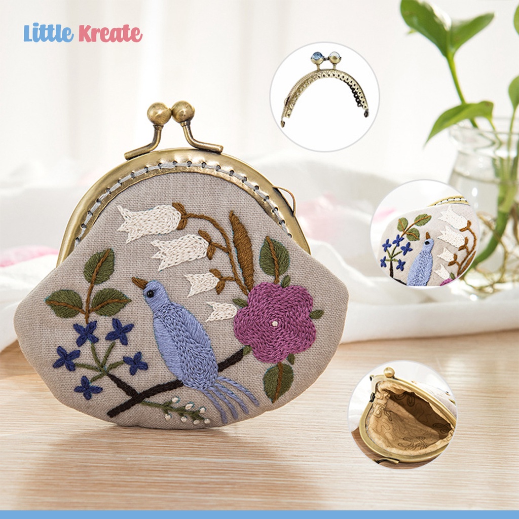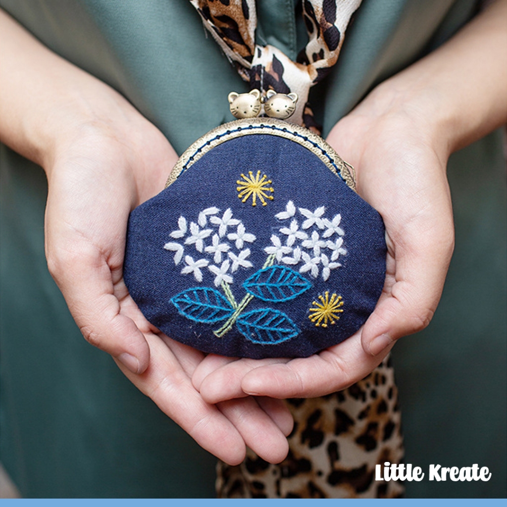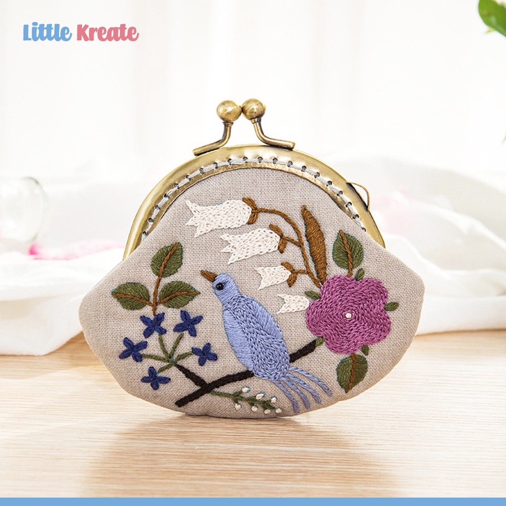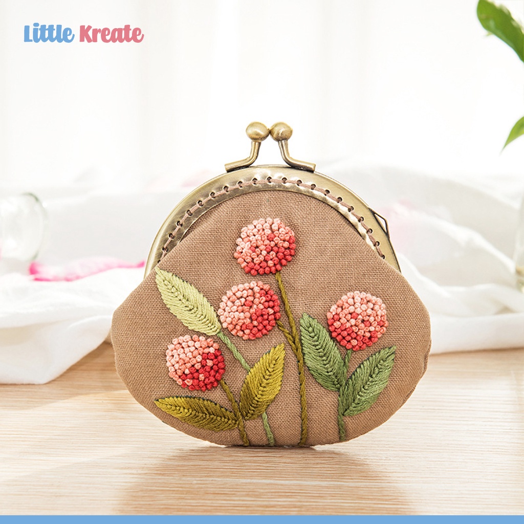 EG#101 DIY Tas Sulam - Dompet Koin / DIY Hand Embroidery Coin Purse Set / Paket Sulam Menyulam / Jahit Bordir