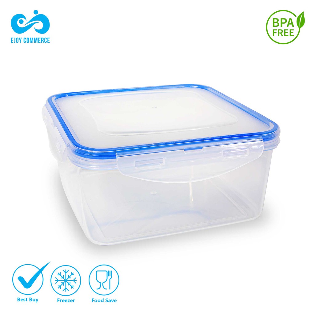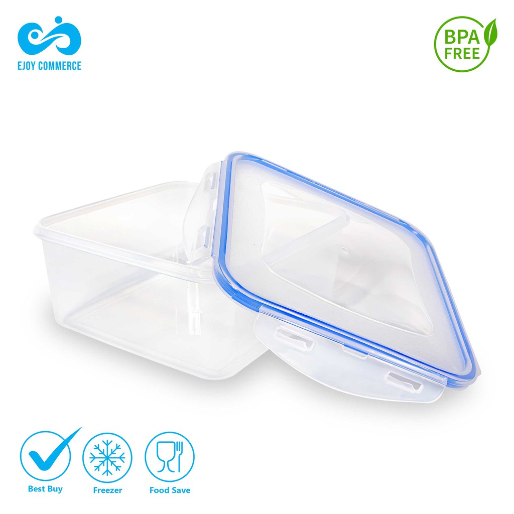EJOY Kotak Makanan Transparan Line Biru Tua Ukuran Sedang