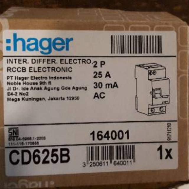 ELCB / Anti kontak 2 phase 25 ampere HAGER. tipe CD625B