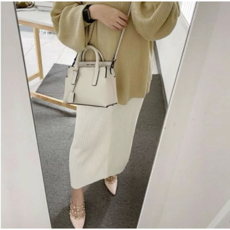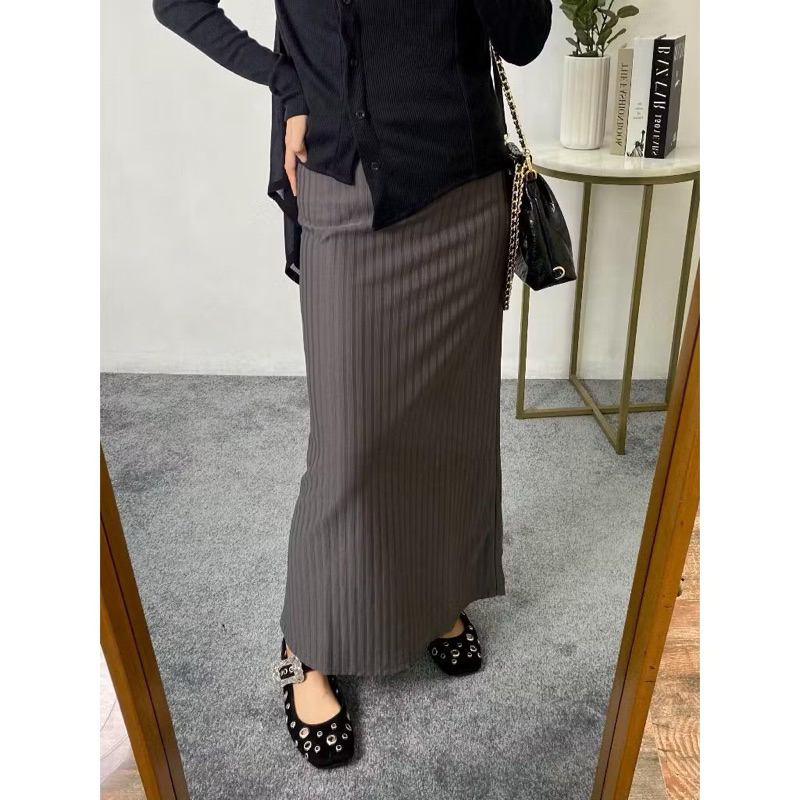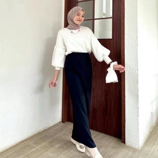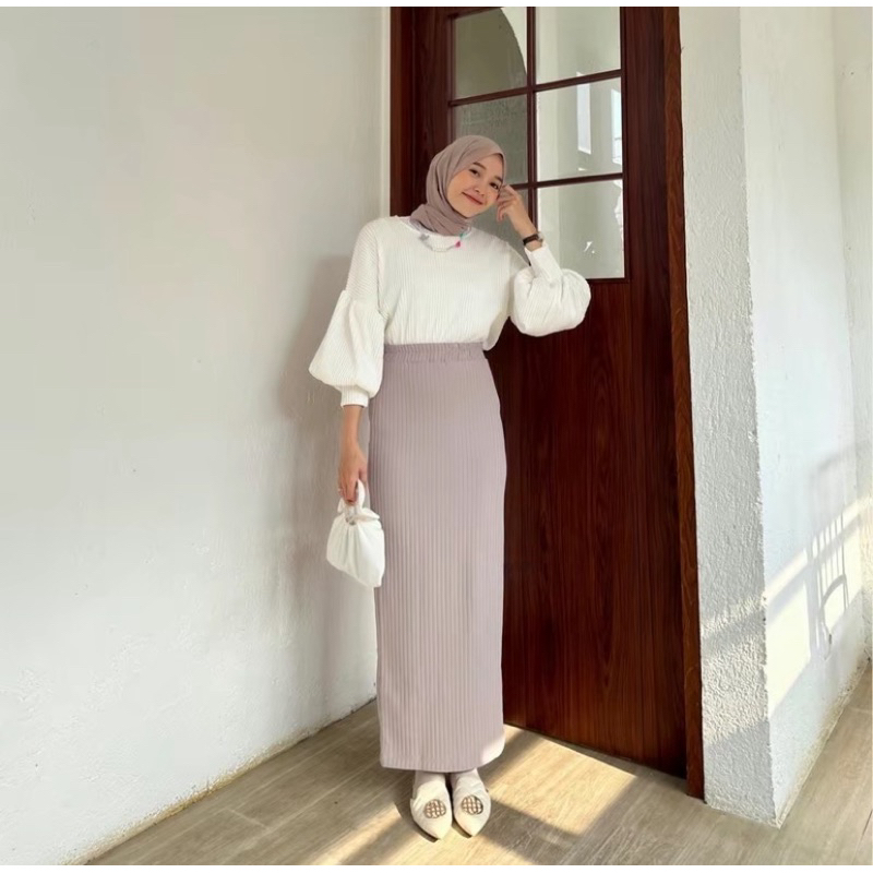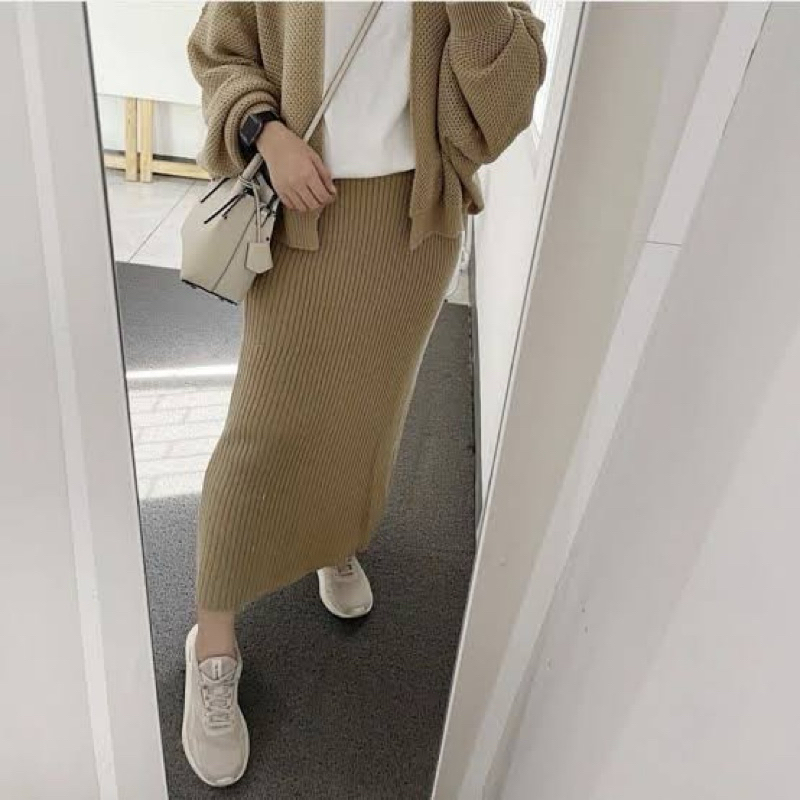 ELEZZA - ROK SPAN RAJUT KNIT HORNET WANITA MAXI SKIRT PREMIUM HITAM KREM COKSU