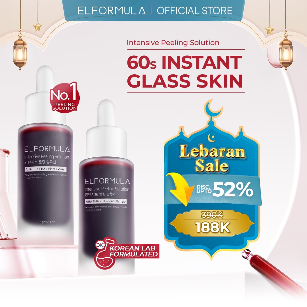 ELFORMULA Intensive Peeling Solution - Peeling Serum Dark Spot Glass Skin Eksfoliasi Wajah Mengangkat Sel Kulit Mati AHA BHA PHA Glowing Smooth Skin Mencerahkan Kulit Halus Blackhead Brightening