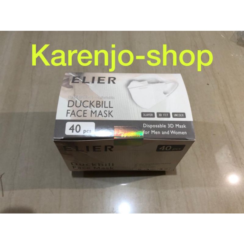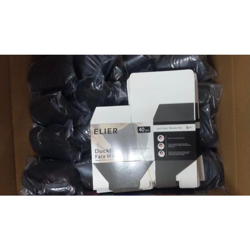 ELIER Masker Duckbill 3Ply isi 40 Pcs - Premium Duckbill Mask - Hitam & Putih