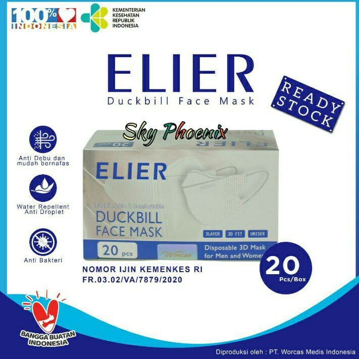 ELIER Masker Embos Boson Duckbill Elier 3ply - Premium Duckbill Mask Masker Duckbill isi 20 pcs dan 40 pcs