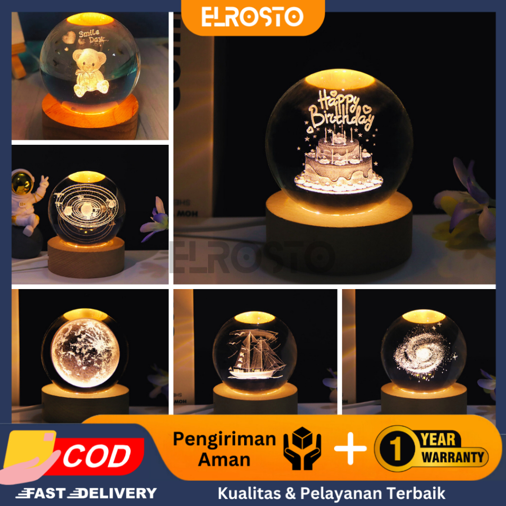 ELROSTO Lampu kamar tidur Lampu Hias LED lampu hias Hadiah spesial lampu malam bulan bola kristal