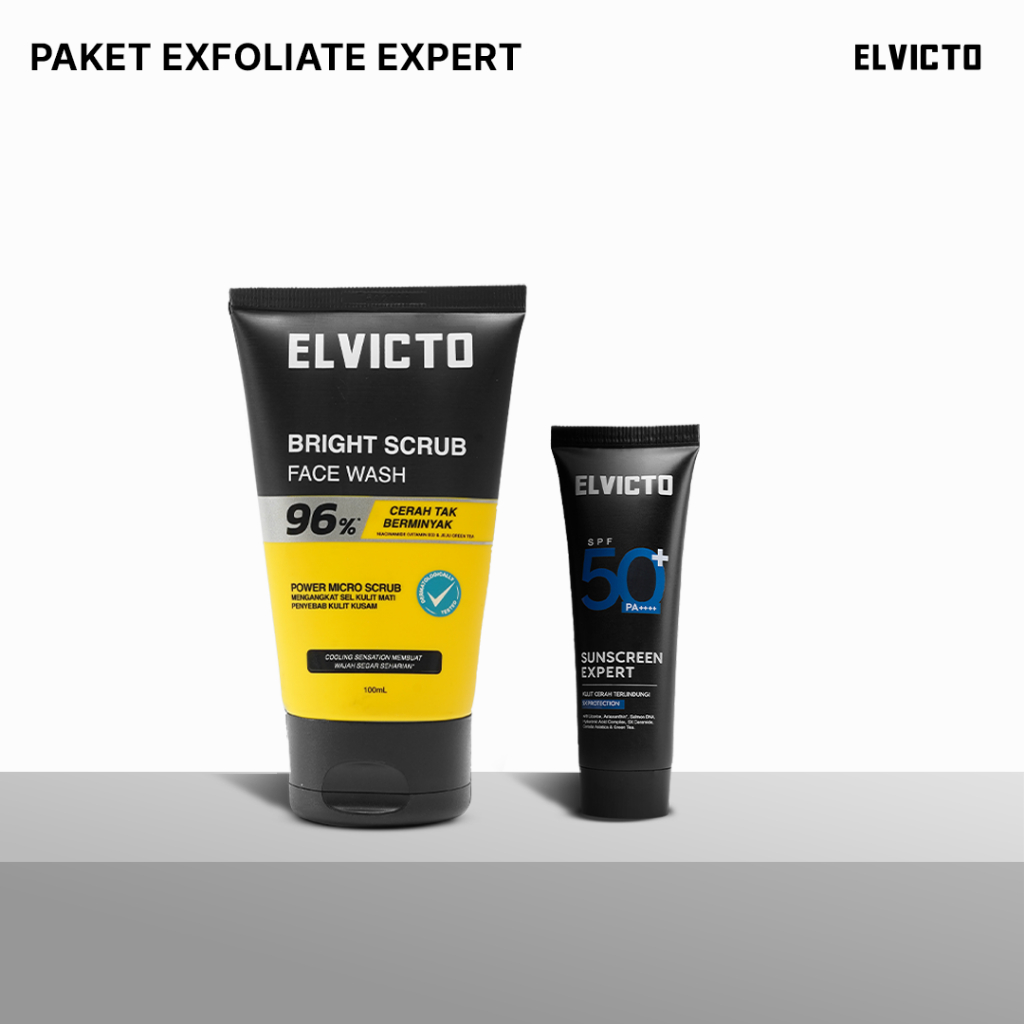 ELVICTO Paket Exfoliate Expert | Face Wash Toner Serum Moisturizer Sunscreen - Triple Hidroxy Acid Aha Bha Pha - Mengangkat Sel Kulit Mati Mencerahkan Kulit Wajah Menyamarkan Kerutan Garis Halus