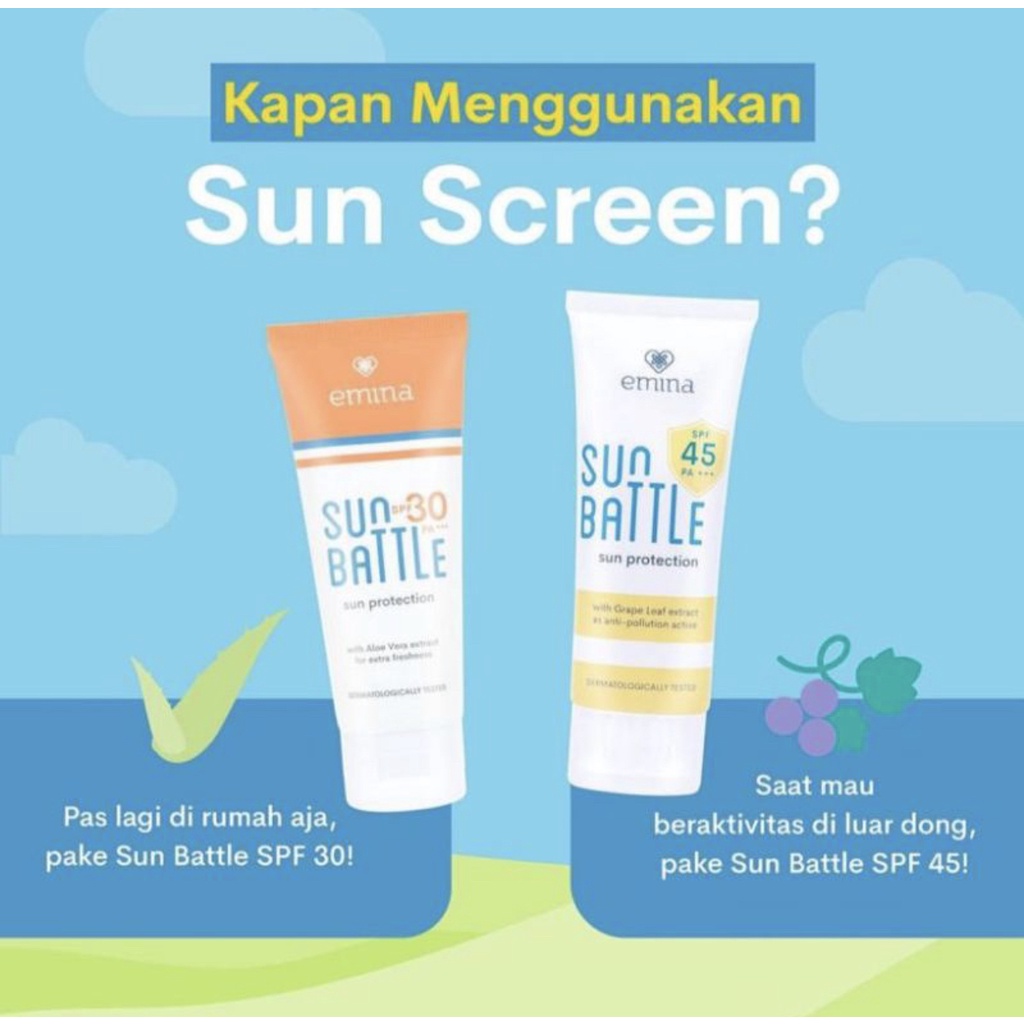 EMINA Sun Protection SPF 30 PA+++ 60mL | Emina Sun Battle SPF 45 | 30 PA+++ 30mL Sunscreen Skin Buddy