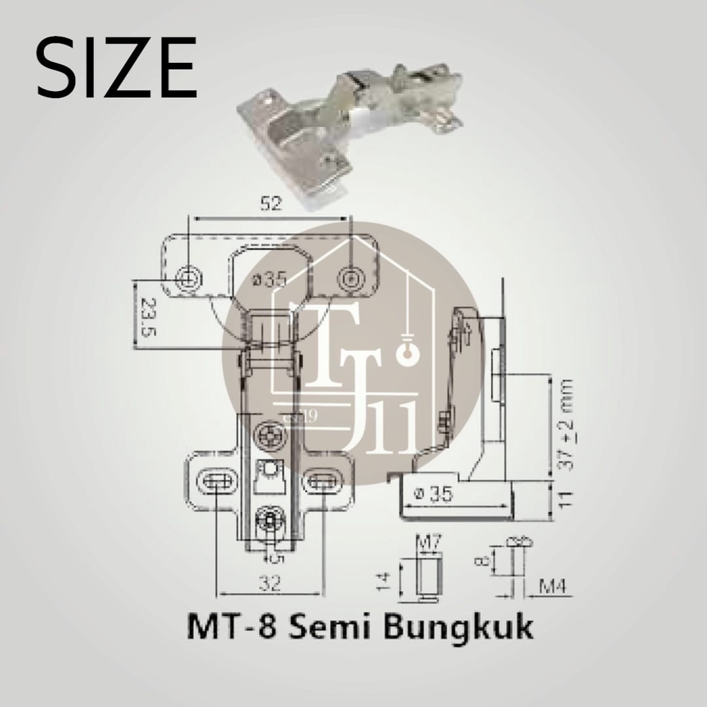 ENGSEL SENDOK SETENGAH BUNGKUK 35MM HUBEN MT-8 / ENGSEL SENDOK SEPARUH BUNGKUK / ENGSEL SENDOK HUBEN