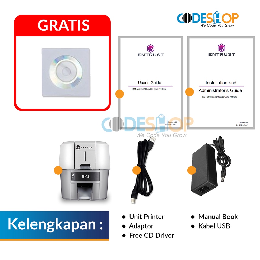 ENTRUST SIGMA EM2 Dual Side Id Card Printer Port USB+LAN