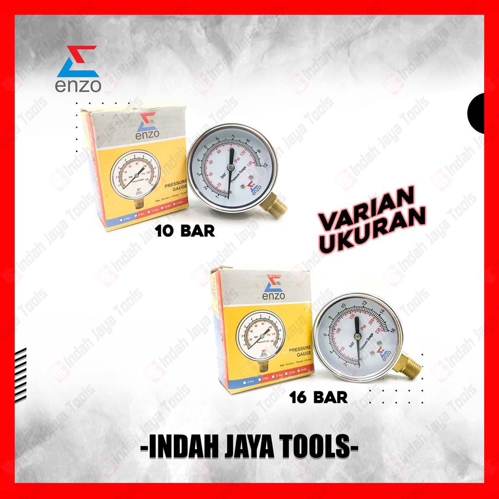 ENZO Manometer 10 16 25 Bar - Pressure Gauge Ukuran Angin Kompresor