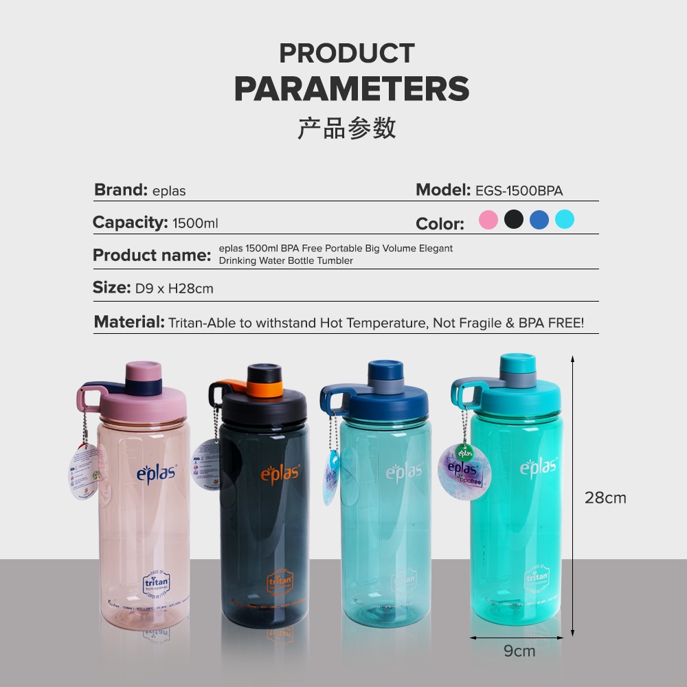 Botol Minum EPLAS Big Water Bottle (1500ml), Water Tumbler, Botol Air, BPA Free, Tritan EGS-1500