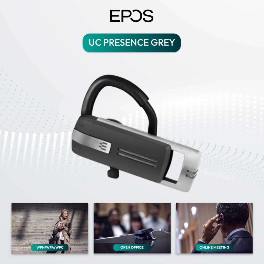 EPOS UC Presence Grey Bluetooth Headset - HD Sound, 10 Hours use, 14 Days Standby Time, Digital Echo Cancelation