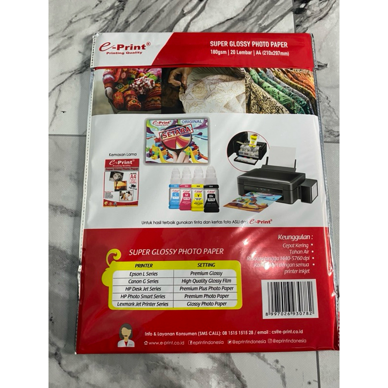 EPRINT KERTAS FOTO A4 180GSM - E-PRINT SUPER GLOSSY FOTO PAPER 180 GSM A4 20 LEMBAR