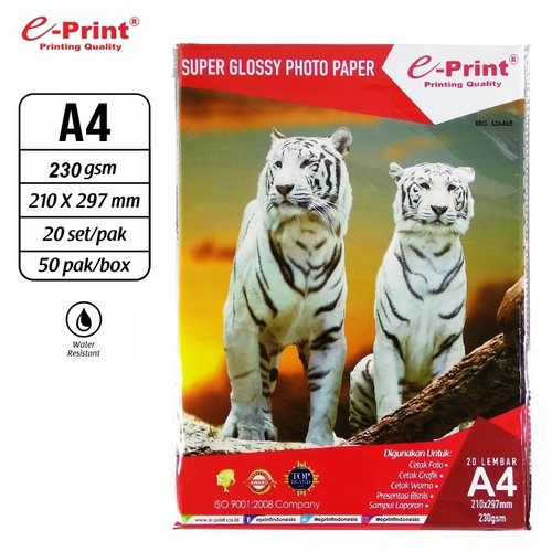 EPRINT SUPER GLOSSY PHOTO PAPER 230 GSM KERTAS FOTO / Kertas Foto e-Print Glossy Photo Paper A4 230 gsm