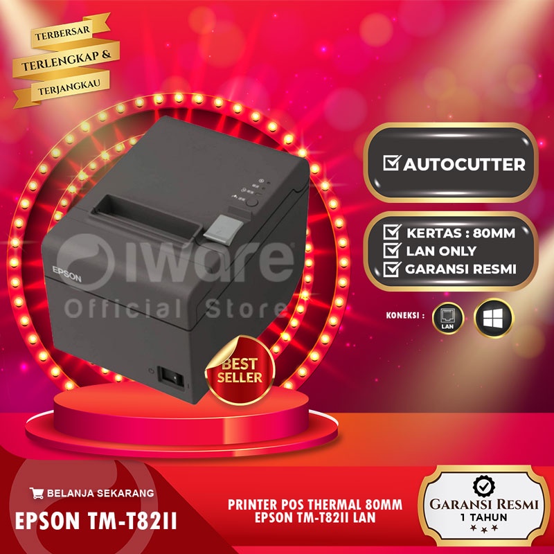 EPSON PRINTER POS KASIR THERMAL TM-T82 LAN / USB 80MM AUTOCUTTER
