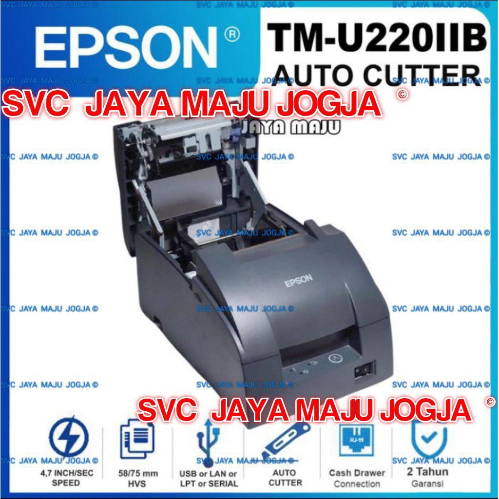 EPSON TM U220 B - AUTO CUTTER - USB / LAN / LPT PARALLEL / SERIAL || PRINTER KASIR DOT MATRIX || EPSON TMU220B / TMU 220B / TMU 220 B / TM U220B - STRUK - TIKET NOMOR ANTRIAN PELAYANAN KARCIS PARKIR - 75X60 75 X 60 - HVS 1 PLY - NCR 2 PLY