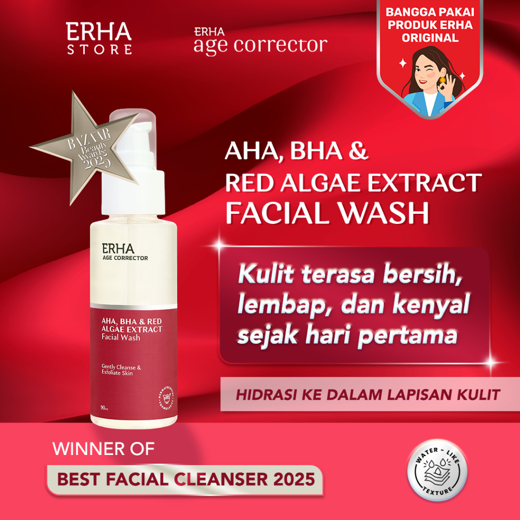 ERHA Age Corrector Facial Wash 90ml AHA, BHA & Red Algae Extract - Sabun Cuci Muka Anti Aging Awet Muda | PH Balance | Membersihkan | Melembabkan | Meremajakan Kulit | Anti Penuaan | Lembab Cerah Halus
