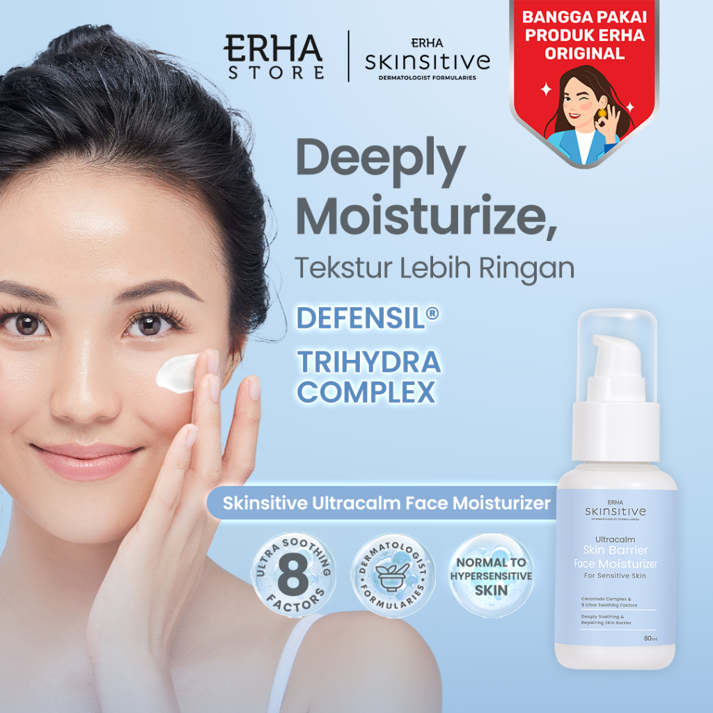 ERHA Skinsitive Ultracalm Skin Barrier Moisturizer 80ml | Pelembap Wajah Semua Jenis Kulit (Normal, Kering, Berminyak, Sensitif) | Deep Moisturize, Tekstur Ringan, Cepat Menyerap | Skin Barrier Kuat Dengan Ceramide, Panthenol, Niacinamide, Calming