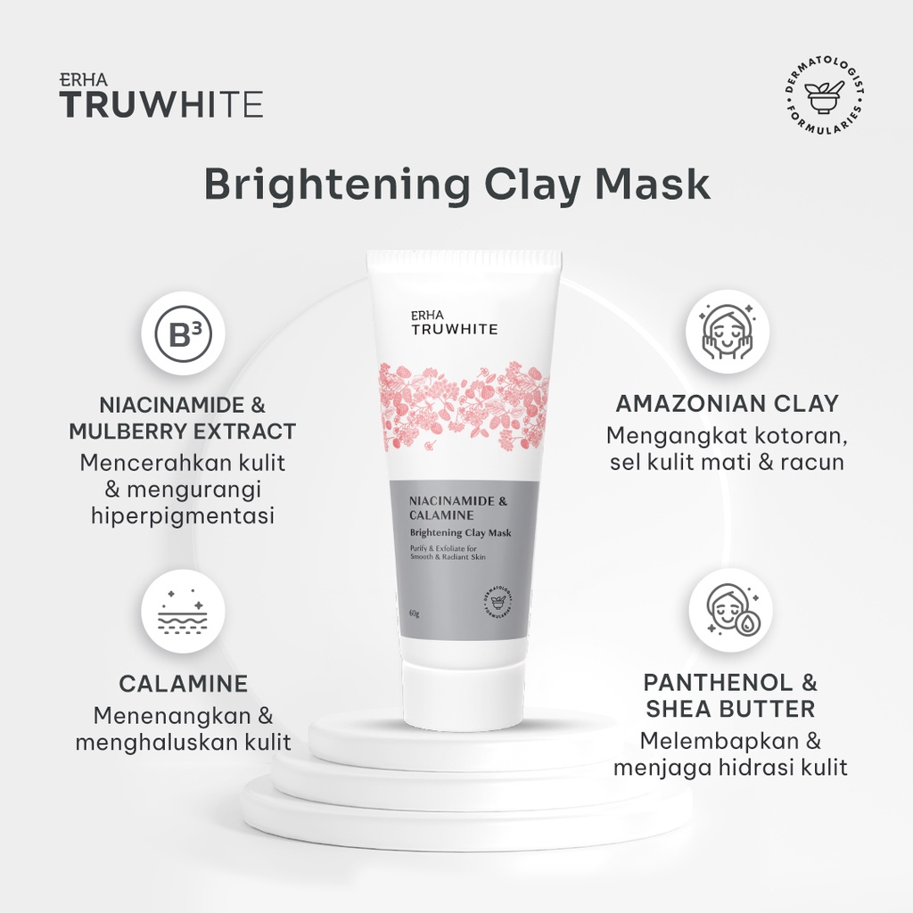 ERHA Truwhite Niacinamide & Calamine Brightening Clay Mask 60g - Masker Pencerah Wajah