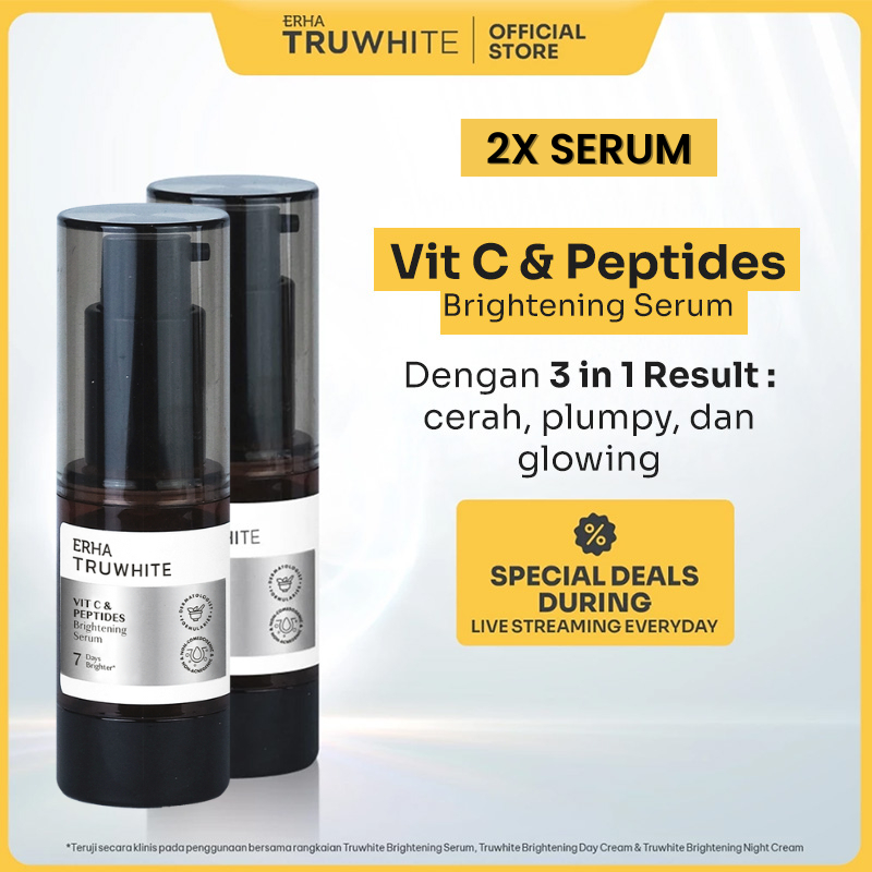 ERHA Truwhite Brightening Serum with Ethyl Vit C/Vitamin C & Peptides – 20ml | Cerah, Plumpy, Glowing, cocok untuk kulit Normal/Sensitif/Jerawat - Serum Pencerah Wajah
