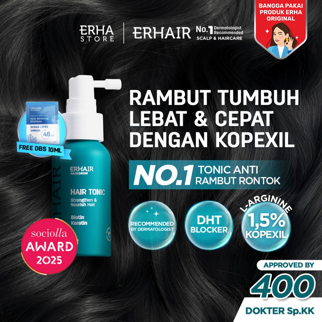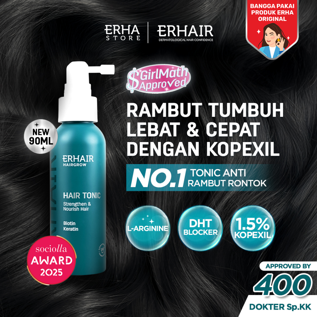 ERHAIR HairGrow Tonic with Kopexil - Tonic Keratin & Biotin Rambut Mengurangi Rontok | Menjaga Kesehatan Kulit Kepala dan Menguatkan Akar | Rekomendasi Ahli Dermatologi
