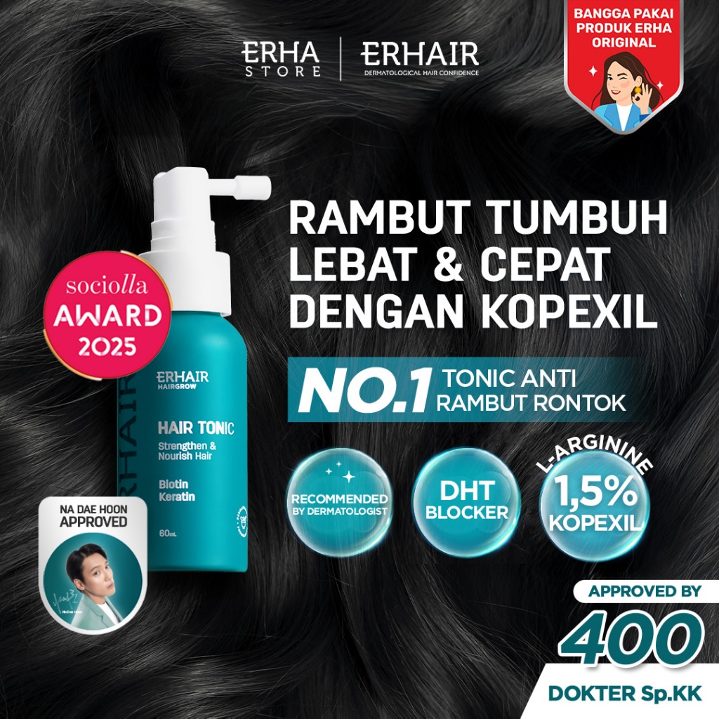 ERHAIR HairGrow Tonic with Kopexil - Tonic Keratin & Biotin Rambut Mengurangi Rontok | Menjaga Kesehatan Kulit Kepala dan Menguatkan Akar | Rekomendasi Ahli Dermatologi