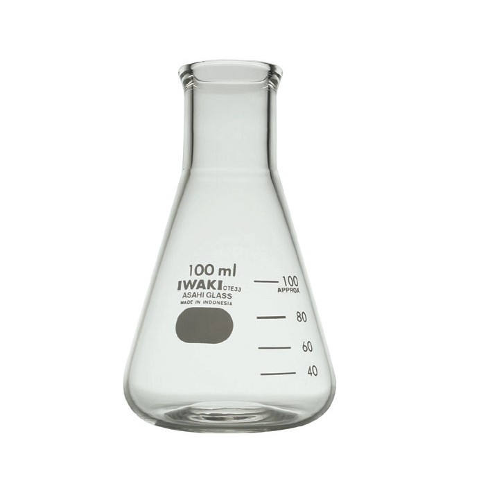 IWAKI | ERLENMEYER FLASK 30mL Ø44xL22mm. Labu Erlenmeyer 30Ml # 4980FK30