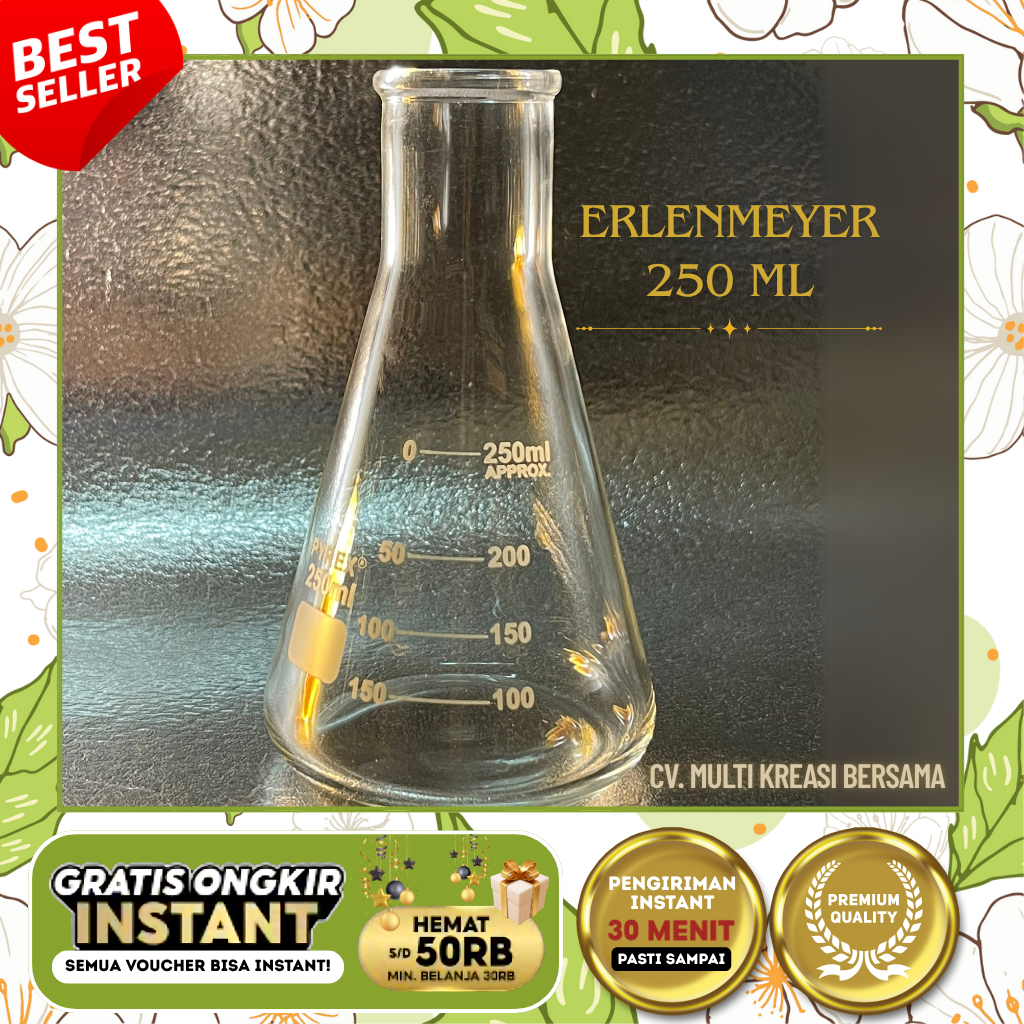 ERLENMEYER PYREX 250 ML / CONICAL FLASK/ LABU ERLENMEYER (MEREK PYREX) 250 ML
