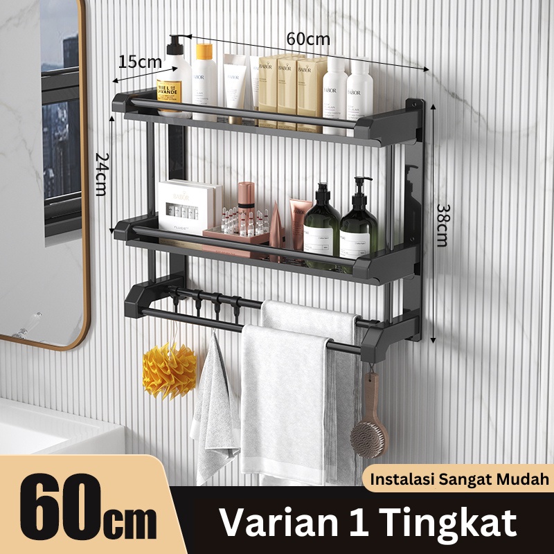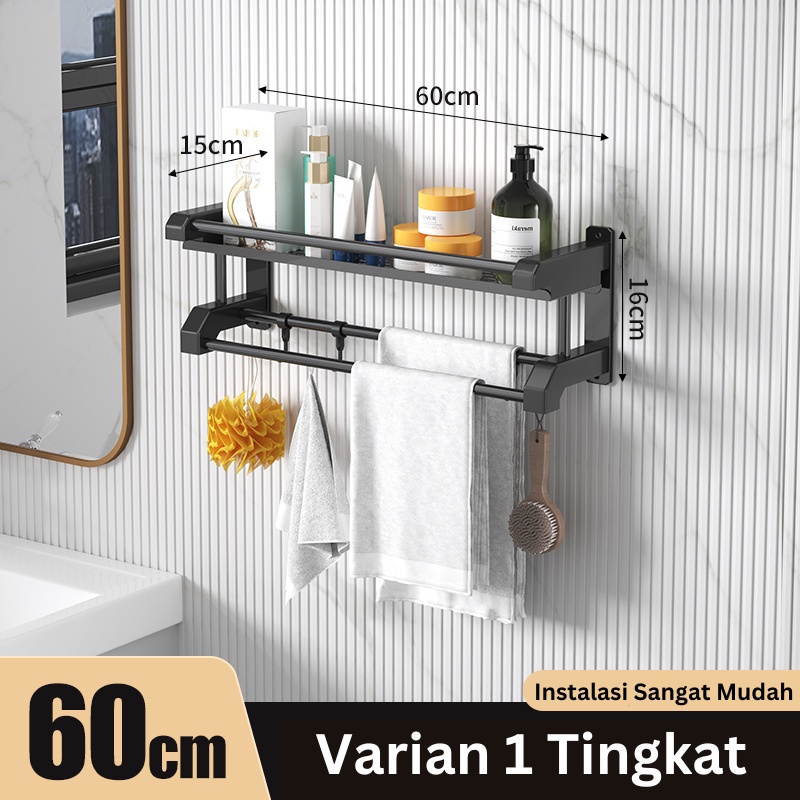 ES Rak Kamar Mandi Dinding Rak Bumbu Dapur Stainless Steel Rak Tempel Gantung Tempat Handuk Tempel