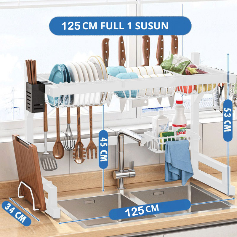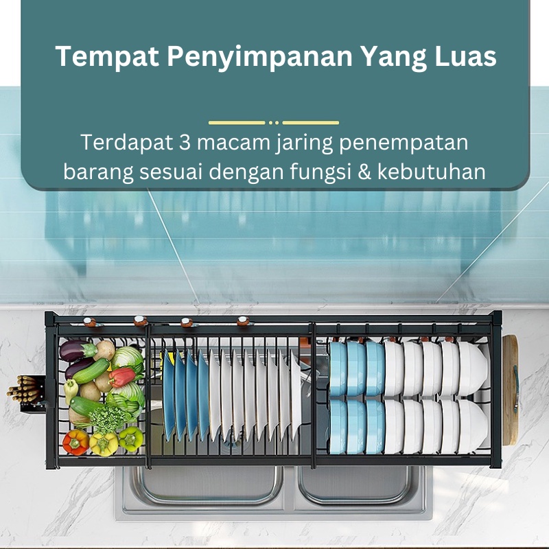 ES Rak Piring Wastafel Stainless Steel Rak Cuci Piring Dapur Rak Penyimpanan Piring